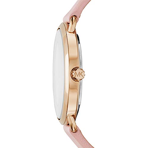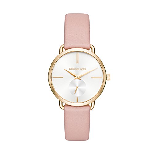 L’orologio Michael Kors Portia è l’emblema dell’eleganza moderna. La cassa color oro e il quadrante minimalista bianco sunray con indici a bastone e sottoquadrante dei secondi vengono messi in risalto dal cinturino in pelle opaca color cipria.